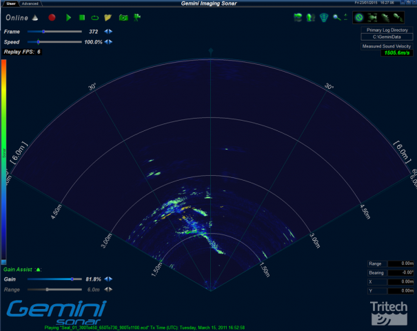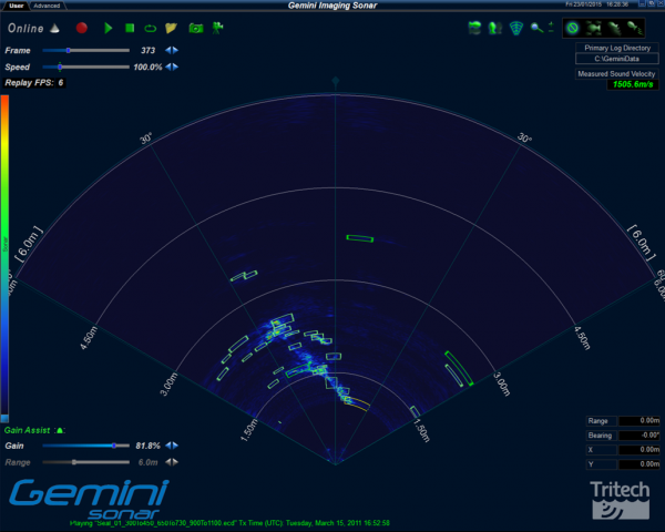 The Gemini SeaTec System utilises the industry standard Gemini hardware, combined with Gemini SeaTec software (an adaption of Tritech’s standalone Gemini software) to provide intuitive object detection and target tracking capabilities; to subsequently classify targets based on the probability of them being a specific, predetermined target type. For example, dolphins and debris; the former being the target the operator requires to be tracked and the latter omitted from tracking.